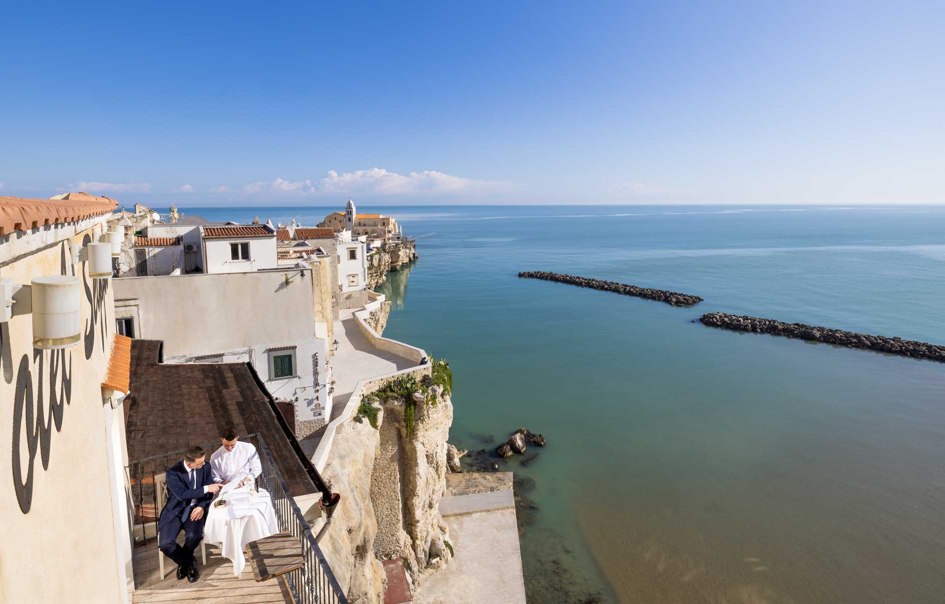 Il Ristorante Donlù offre anche la possibilità di gustare meravigliosi aperitivi davanti ad uno dei più suggestivi scorci della costa Viestana.